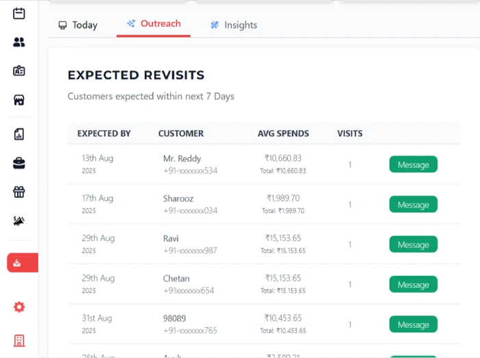 Targeted offers with built-in WhatsApp automation—segment and schedule, auto-apply at billing, and measure redemptions & ROI live.